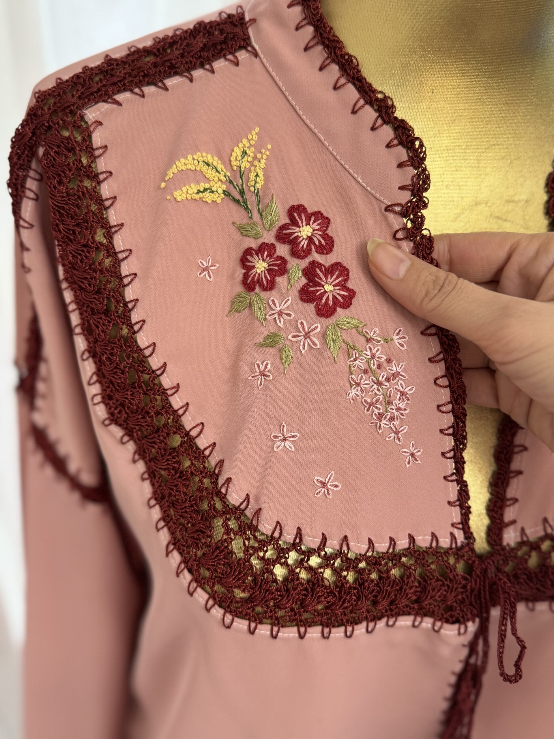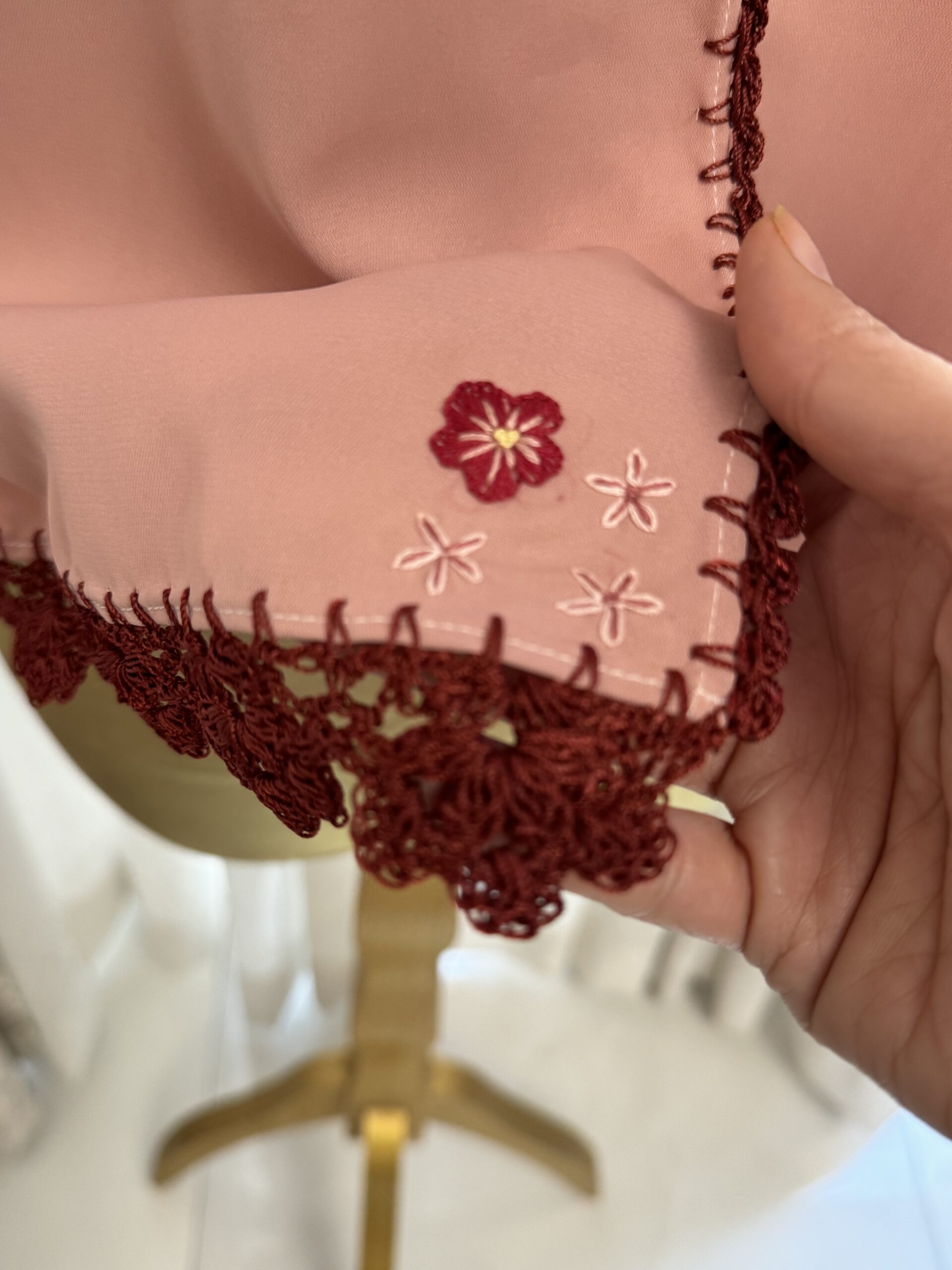 قلاب بافی با نخ ابریشم و گلدوزی با نخ دمسه فرانسه»