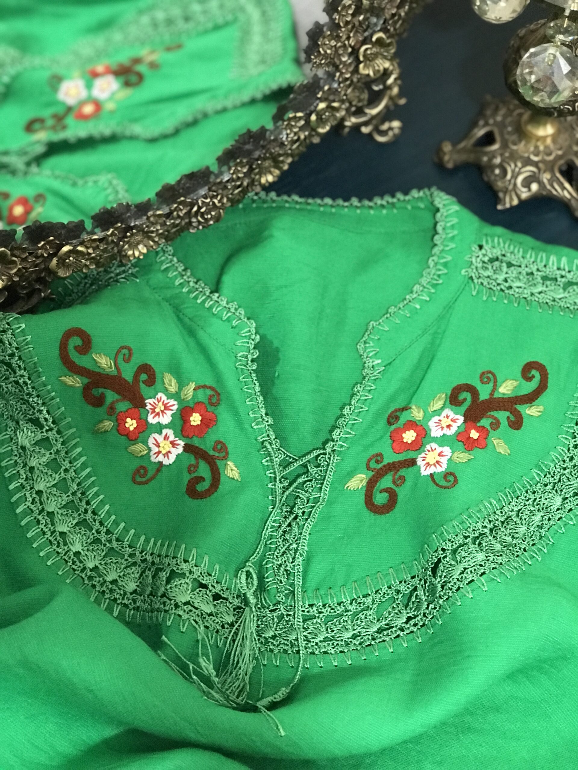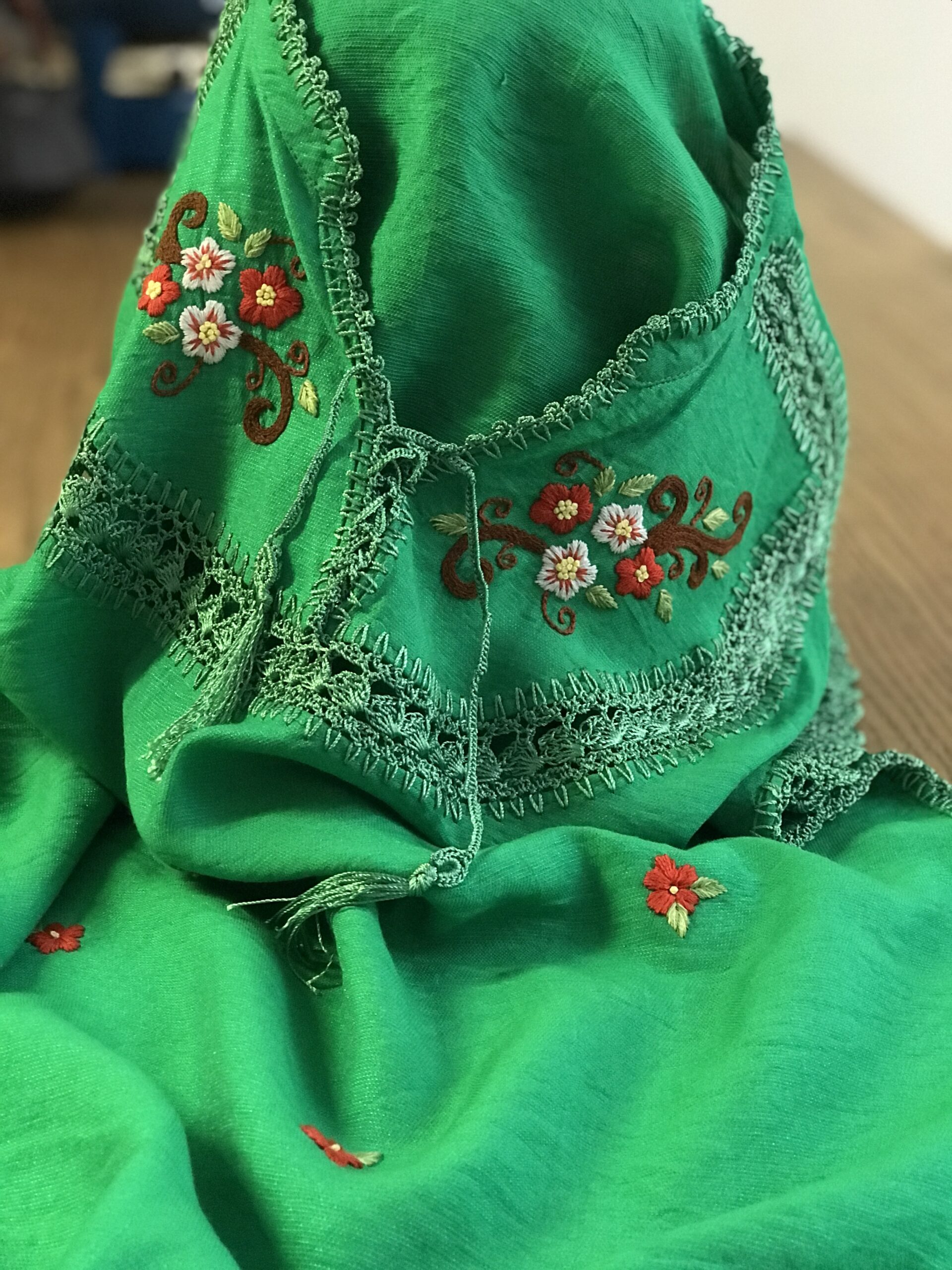 قلاب بافی با نخ ابریشم و گلدوزی با نخ دمسه فرانسه»