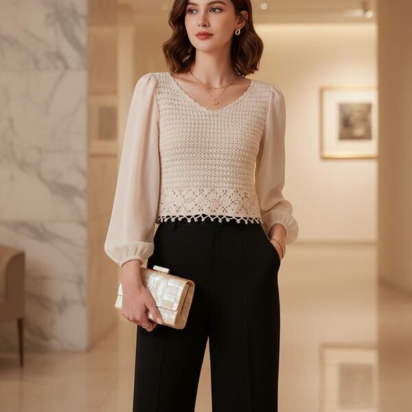 استایلی نو با تلفیق قلاب بافی و گلدوزی روی لباس